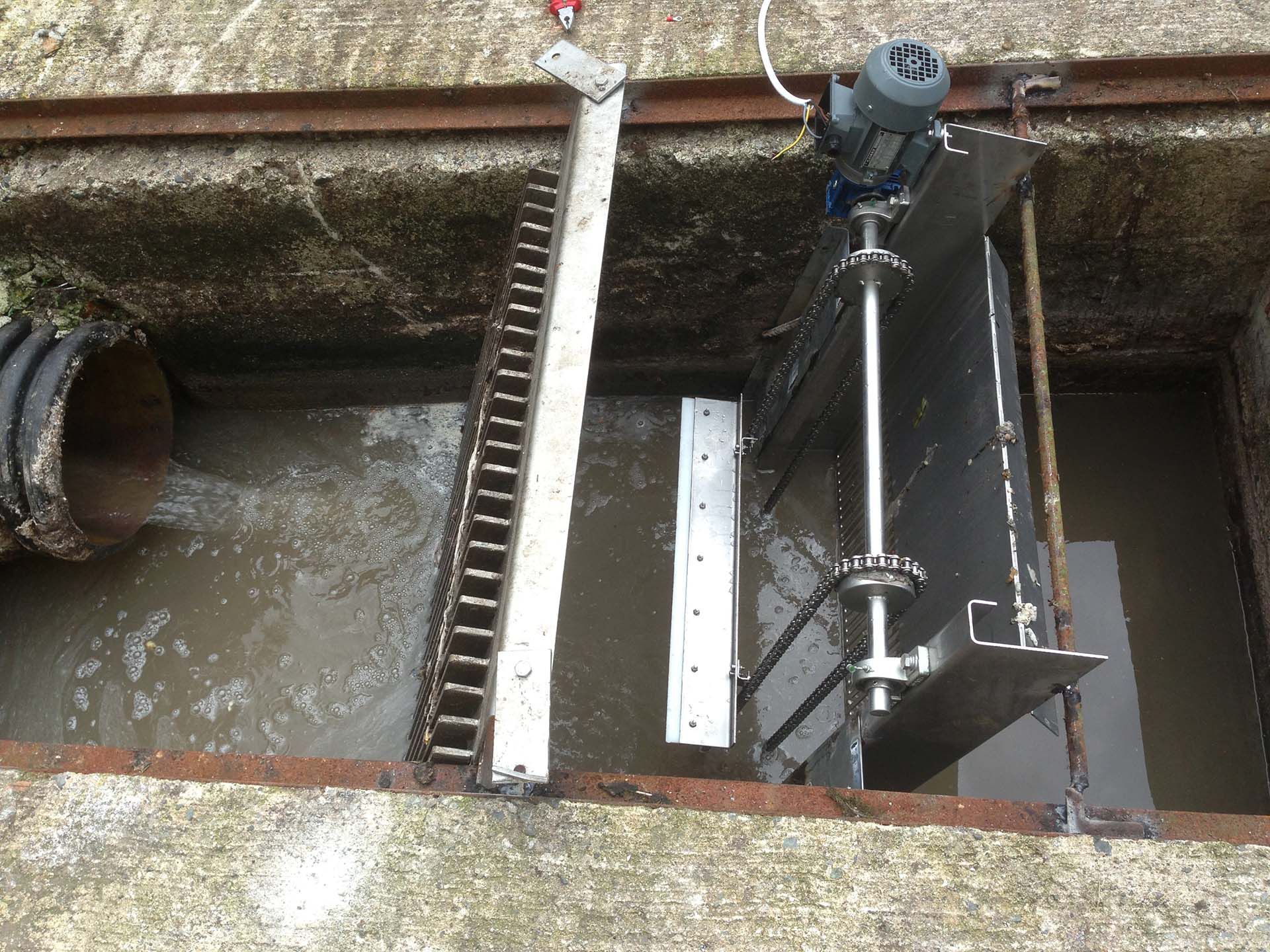 بينما لا تقل السرعة في القناة قبل المشط عن 0.5 م/ث، فإن السرعة بين القضبان لا تتجاوز 1.0 م/ث.